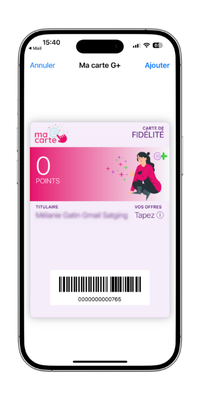 Retrouvez votre carte G+ dans votre application Wallet une fois installée.